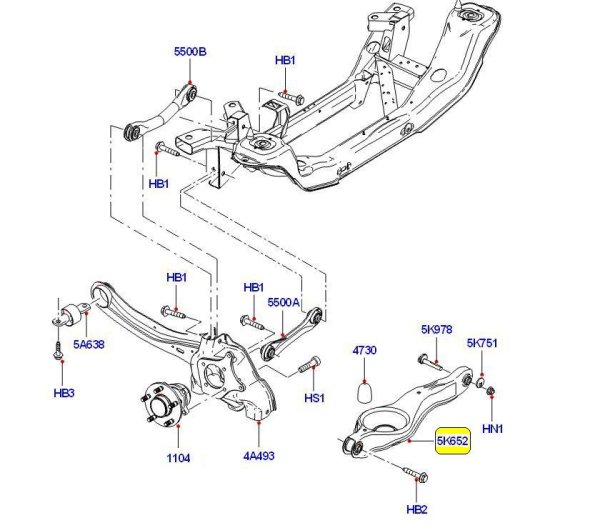 Одно из самых слабых звеньев в задней подвеске - сайлентблоки заднего основного рычага, служащего опорой для пружины. Замена сайлентблоков на этом рычаге по ряду причин не всегда целесообразна, поэтому чаще всего может быть рекомендована замена рычага целиком. На Форд Фокус подпружинные рычаги двух видов: "кривые" и "прямые", и не всегда возможно правильно определить нужный даже по ВИН номеру автомобиля. Форд Фокус с кузовом универсал всегда оснащаются "прямыми" рычагами, хэтчбек как правило "кривыми". На схеме этот рычаг обозначен желтым. Этот рычаг имеет усиленную в месте крепления стойки стабилизатора конструкцию.